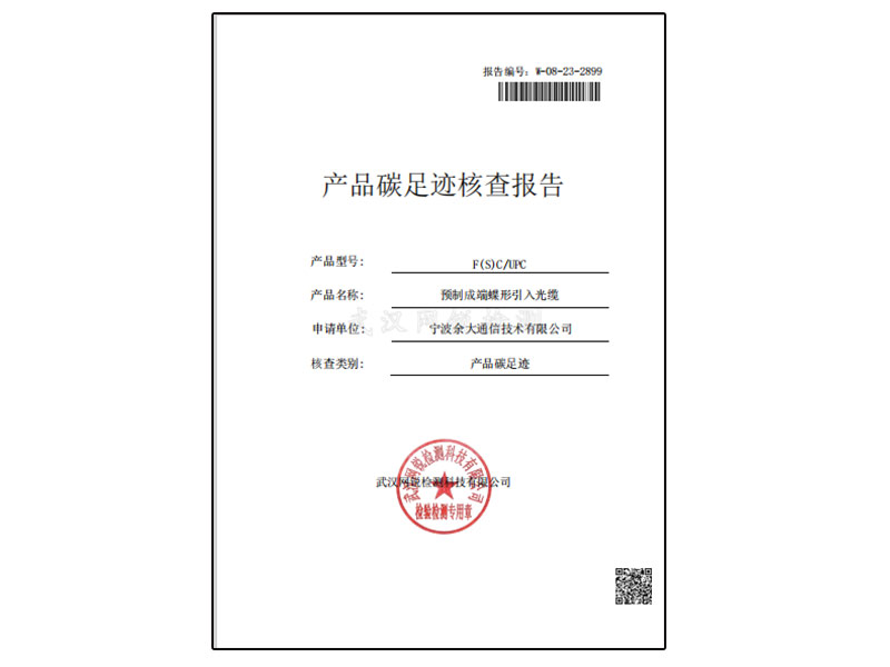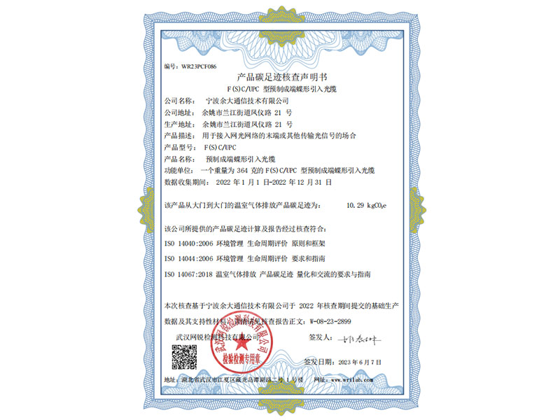 Carbon Footprint Verification Statement (F (S) C/UPC Prefabricated End Butterfly Introduction Optical Cable)