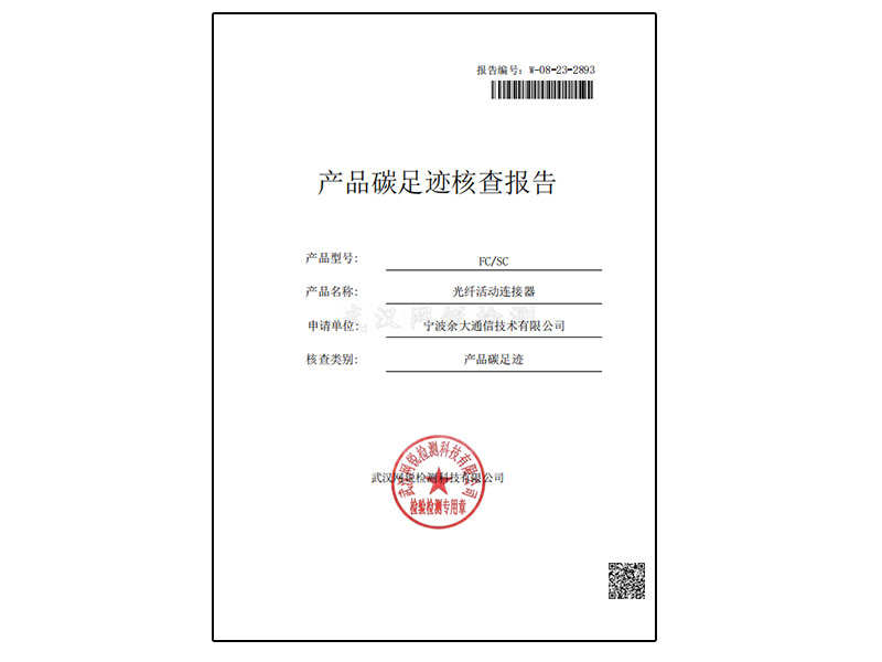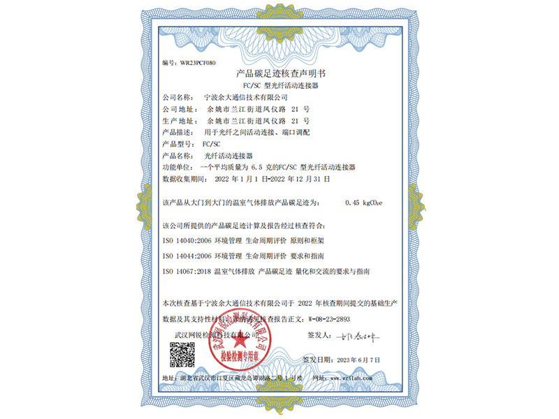 Carbon Footprint Verification Statement (FC/SC Fiber Optic Active Connector)