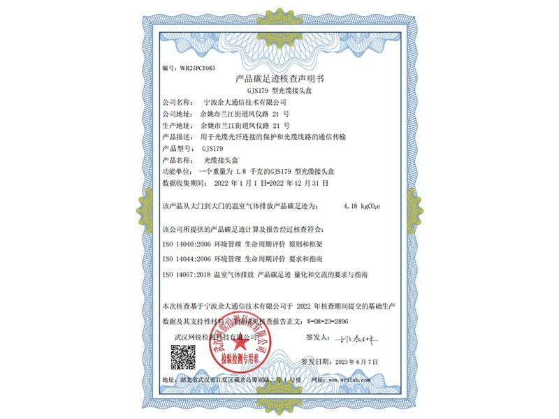 Carbon Footprint Verification Statement (GJS179 Optical Cable Joint Box)